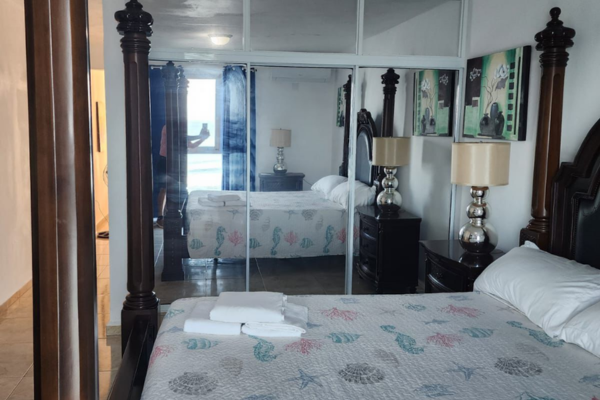 Wake up to the sound of the waves and fall asleep wrapped in the ocean breeze. Our Double Oceanfront Suite places you right above the water, offering uninterrupted views of the sea and the most romantic sunsets in Aguada. This spacious suite features two comfortable beds, a fully equipped kitchen, where you can relax, enjoy your meals, or simply watch the sun melt into the horizon. Perfect for couples, small families, or guests seeking a peaceful coastal getaway with the convenience of cooking at home.